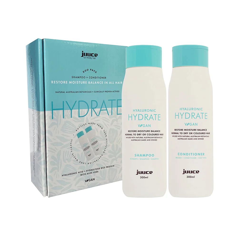 Unlock the secret to luscious, healthy hair with the power of hyaluronic acid. Delve into the science behind this hero ingredient that has taken the beauty world by storm, offering intense hydration and moisture to your tresses. Derived from natural sources, hyaluronic acid acts as a potent humectant, capable of retaining water up to 1000 times its weight, sealing in moisture and vital nutrients for stronger, more vibrant hair. Whether you have dry, frizzy locks or coloured hair in need of a boost, hyaluronic acid proves to be a versatile solution, for revitalizing curls, fighting frizz, and promoting scalp health. Explore the transformative benefits of Juuce Hyaluronic Hydrate shampoo and conditioner, designed to restore balance and radiance to your hair, leaving you with a mane that exudes vitality and beauty.